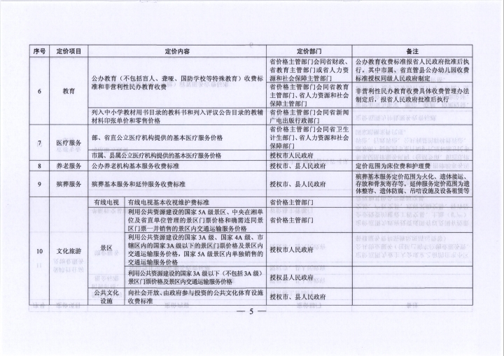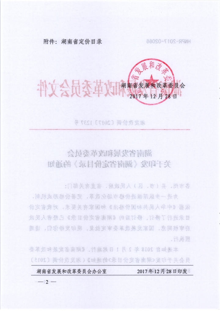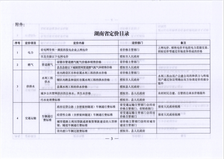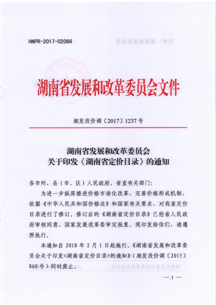 湖南省发展和改革委员会 关于印发《湖南省定价目录》的通知